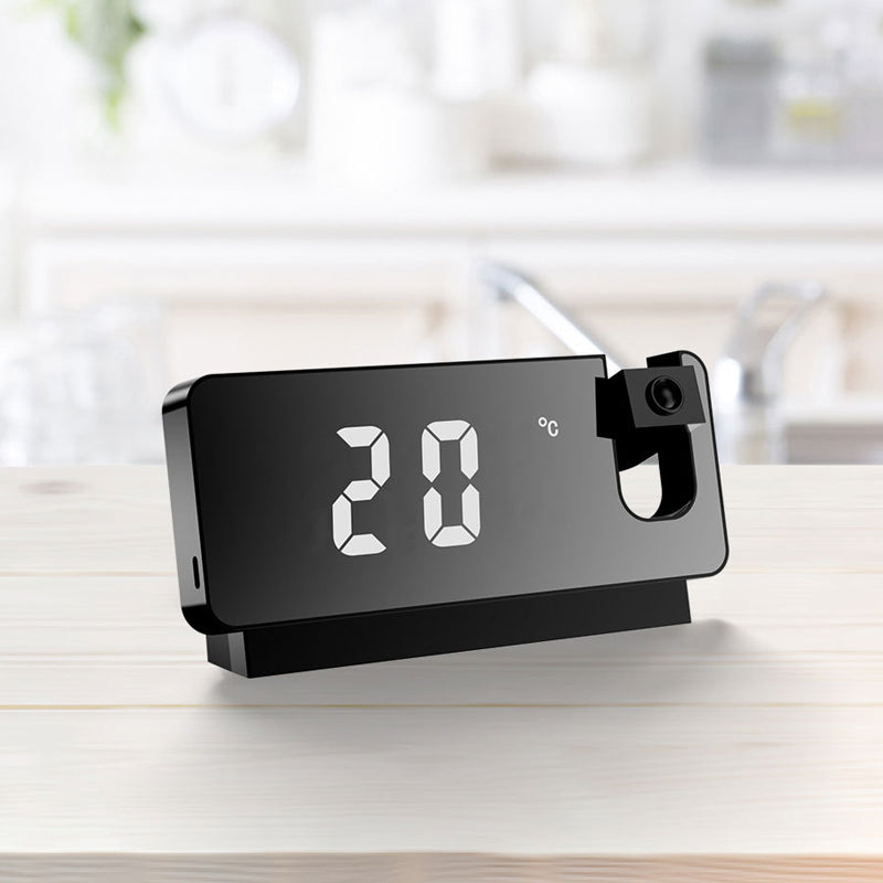 Multifunktionell digital väckarklocka med projektor, 7'' stor LED-display, dubbla larm, USB-laddare för att passa dina behov, ett perfekt val för dig att vara medveten om tiden i sovrummet, köket och kontoret. Det är mer än en klocka. Fler funktioner tillgodoser din strävan efter ett bättre liv.